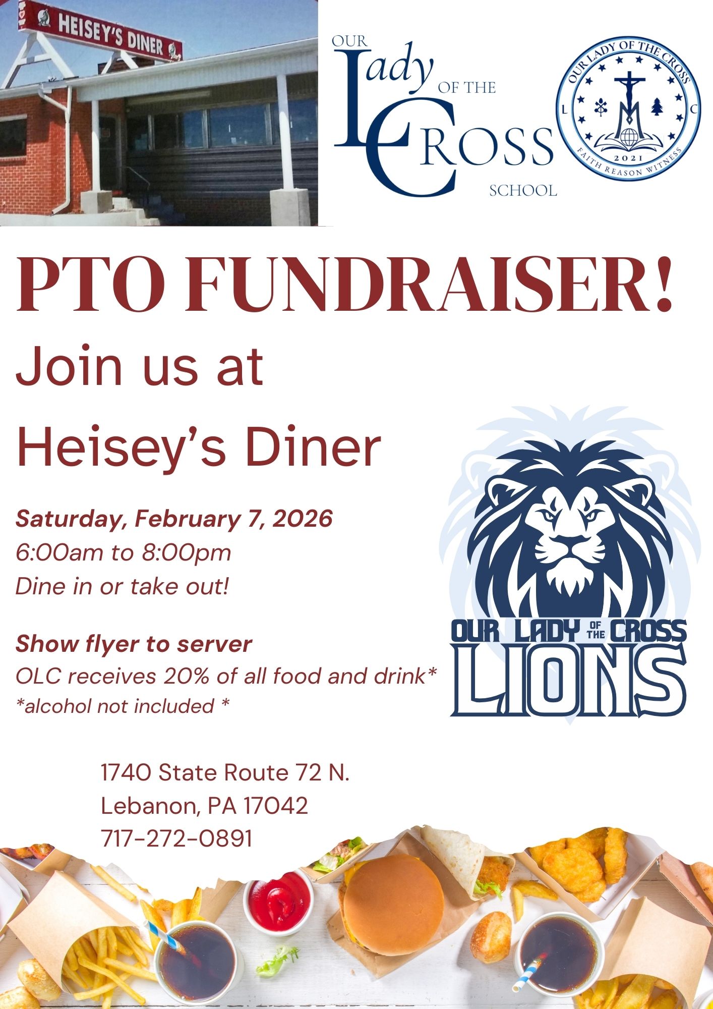 PTO Heisey’s Fundraiser February 3, 2026 Posted by Our Lady of the Cross Parents Join us at Heisey’s Diner on Saturday, February 7th! Share 0